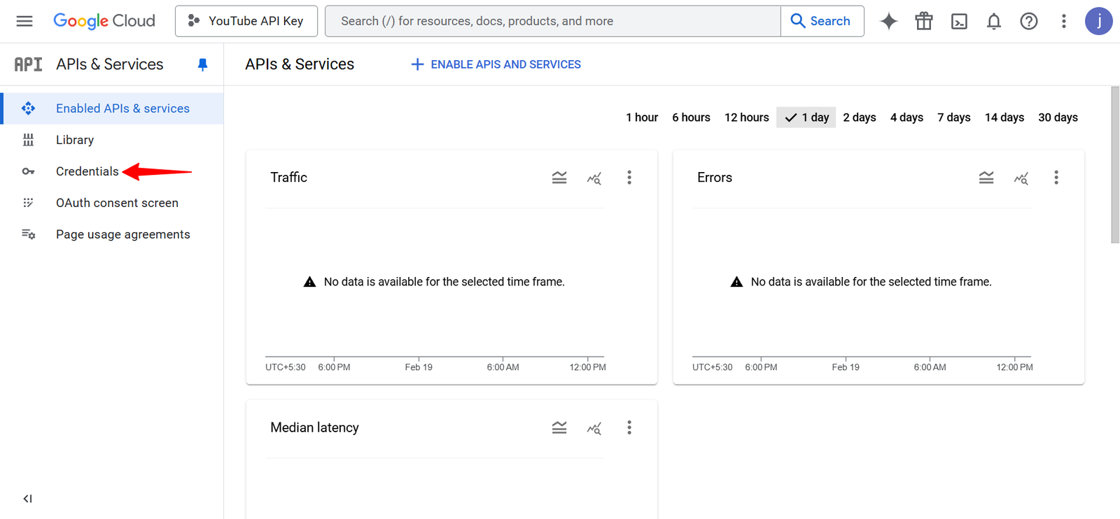 Once you’ve created a project, click the Credentials tab in the left menu.